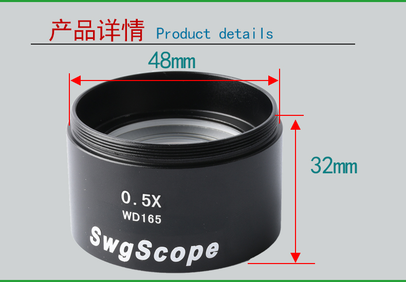 SWG-0.5X 0.5x stereo microscope objective working distance 165mm v