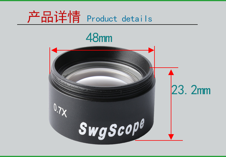 SWG-0.7X 0.7x stereo microscope objective working distance 120mm
