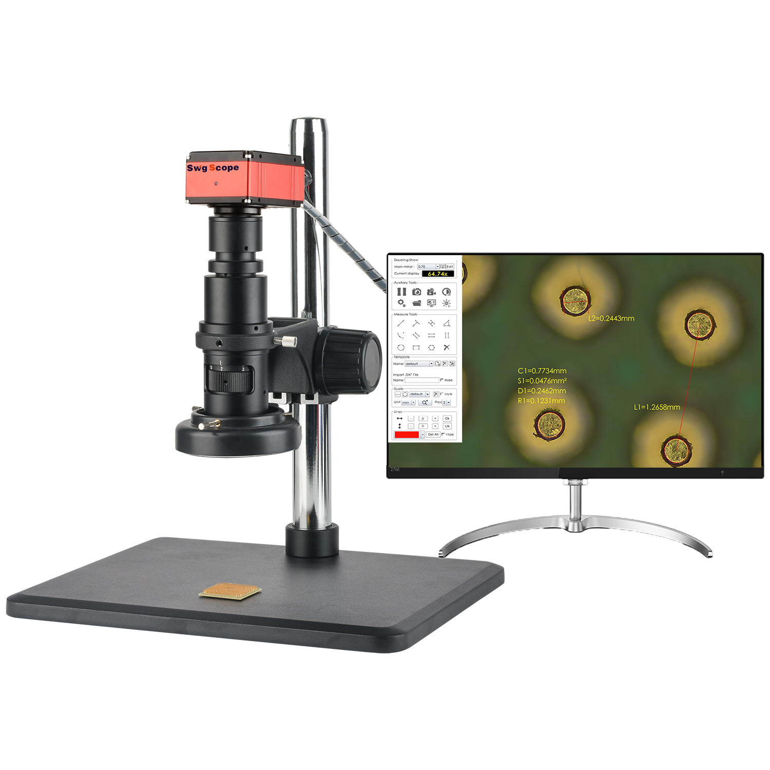 Column height 350mm,Base size 320mmX260mmX16mm,lens aperture 50mm